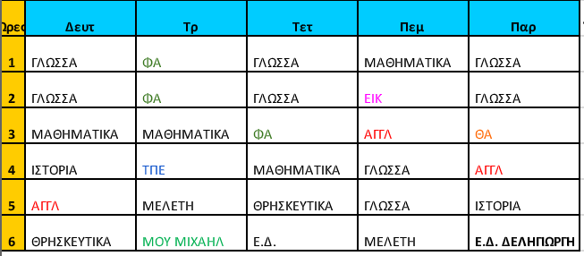 Ωρολόγιο Πρόγραμμα Σχολ. Έτους 2025-2026